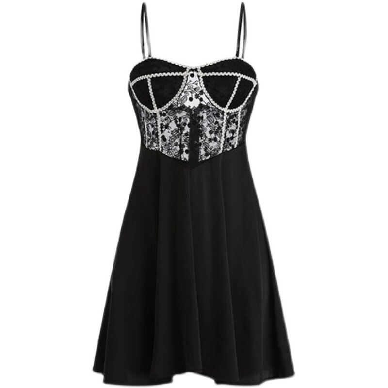 New product 2022 new true silk sexy pyjamas silk V collar harness sleeping dress embroidery lace seductive home clothes