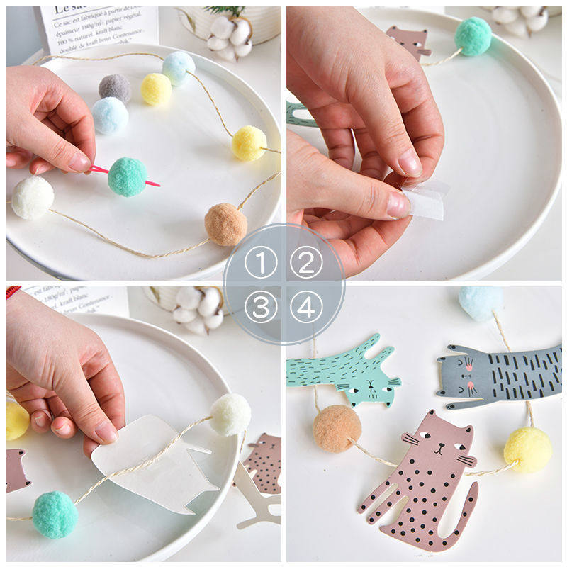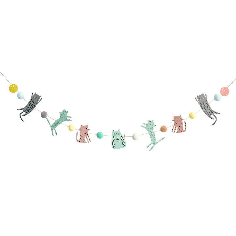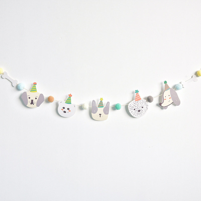 Dog pull flag cat cat pull flag 10 cat heads 2 fish pull flag champagne English letter MEOW champagne English letter WOOF dog cake pull flag 10cm tassel hanging flag happy birthday pull flag 1 life