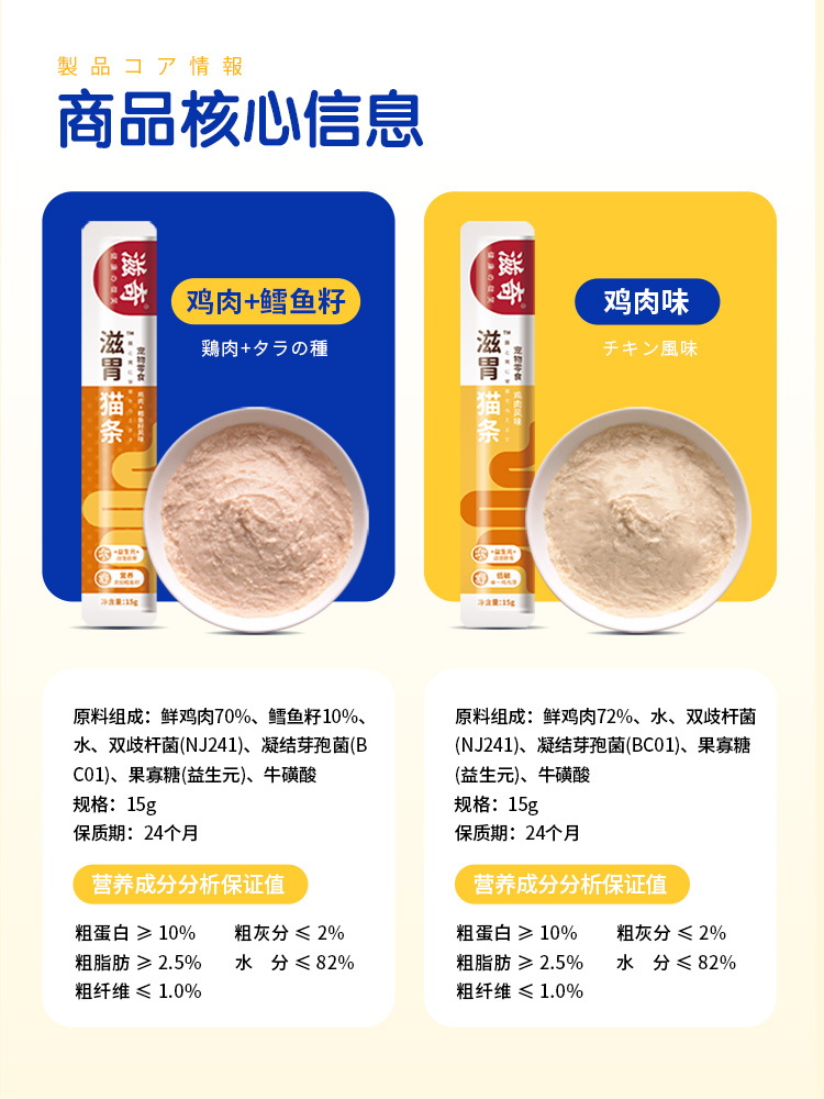 Ziqizi Stomach Cat Strips 15g*36 sticks Fresh Chicken Cod Roe Added Prebiotics Conditioning Stomach Cat Snacks