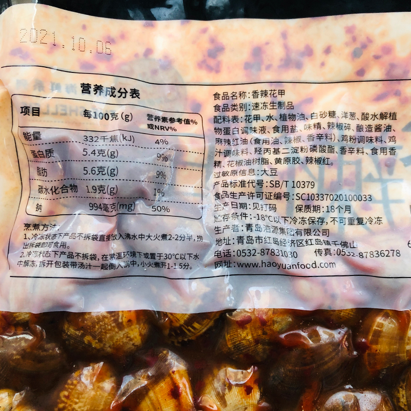 Spicy flower armor 380g open bag ready-to-eat semi-finished seafood spicy clams clam meat restaurant barbecue grill side dishes