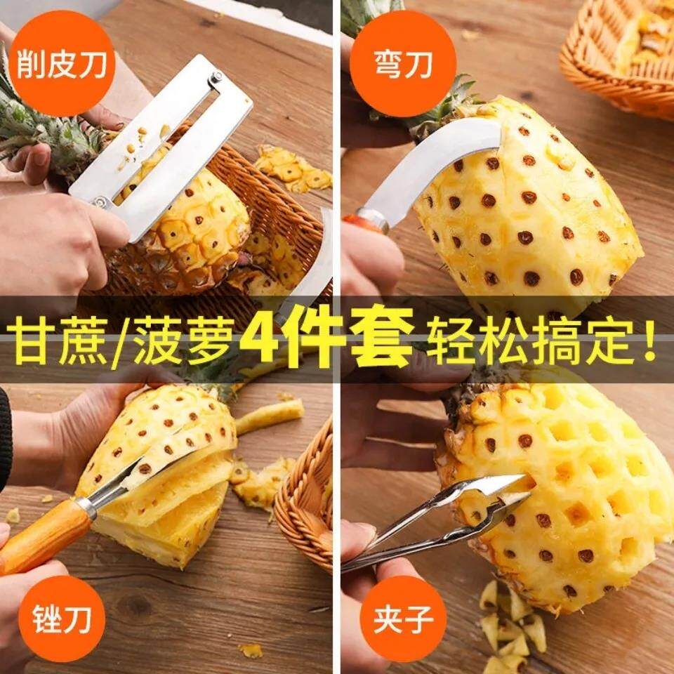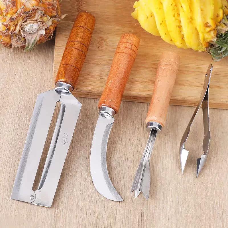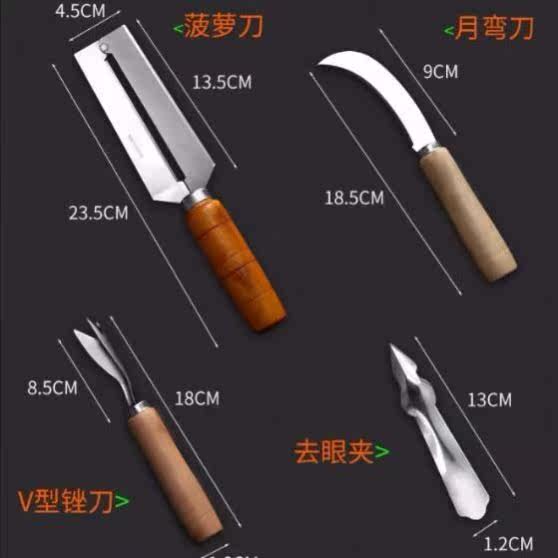 Moon scimitar (remove both ends to get the pulp) V-shaped file (gently push to remove the eye) large pineapple knife (25 cm long) suitable for commercial use medium pineapple knife (22 cm long) recommended to buy a medium 4-piece set (strong
