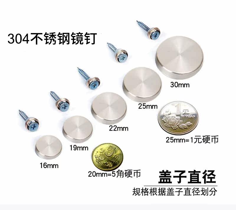 304 Stainless Steel Advertising Mirror Nail Self Tapping Screw Tile Acrylic Glass Fixed Cap Thickened Mirror Trim Lid