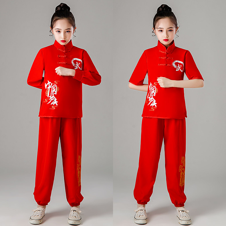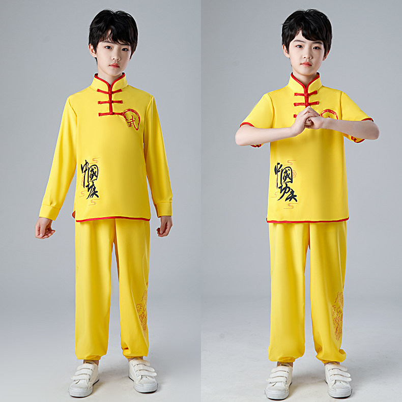 Children's martial arts practice to serve girls boys Kung Fu Tai Chi uniforms Long sleeves Short sleeves Young children training clothing performance clothes