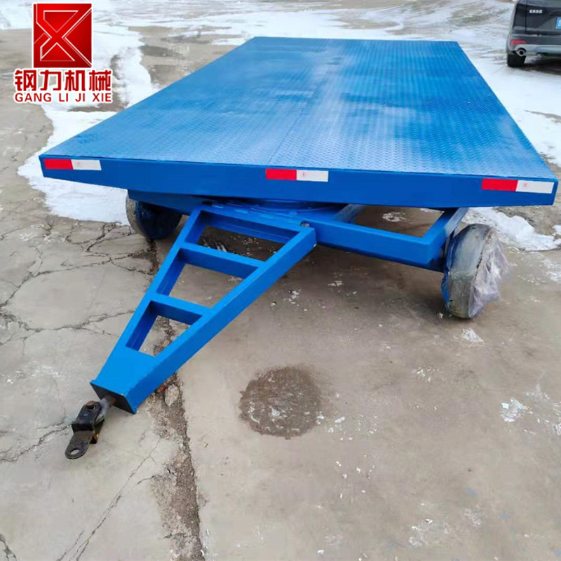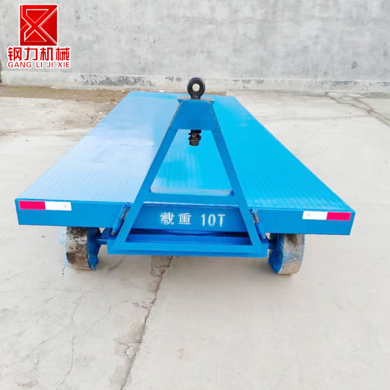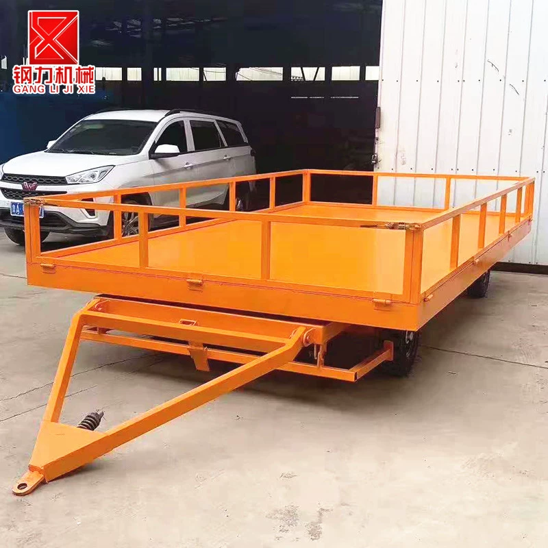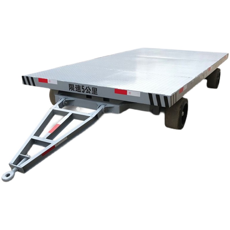 10 ton factory area stacking high machine traction flatbed truck four-wheel steering heavy material weekly turning large tonnage transport towed trailer