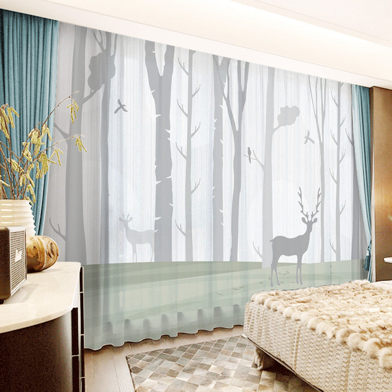 Nordic Minimalist Modern Curtains Snowland Forest Elk Antlers Wind Living Room Bedroom Shading Yarn Curtain Balcony Floor Landing