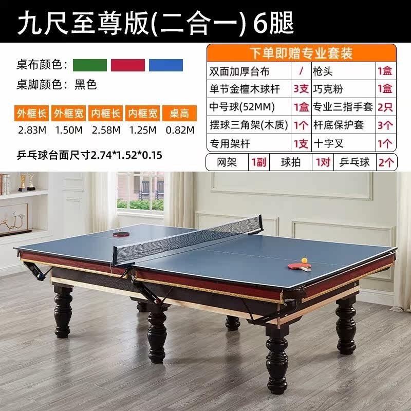 National standard American billiard hall adult home billiard table Chinese black eight 8 marble billiard table table tennis two-in-one