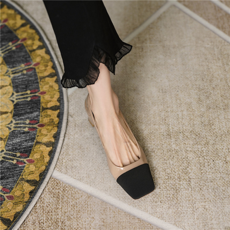 Chic Simple Design French Retro - Color Coars and Leather - headed Surface Single Shoes Commuter High Heels