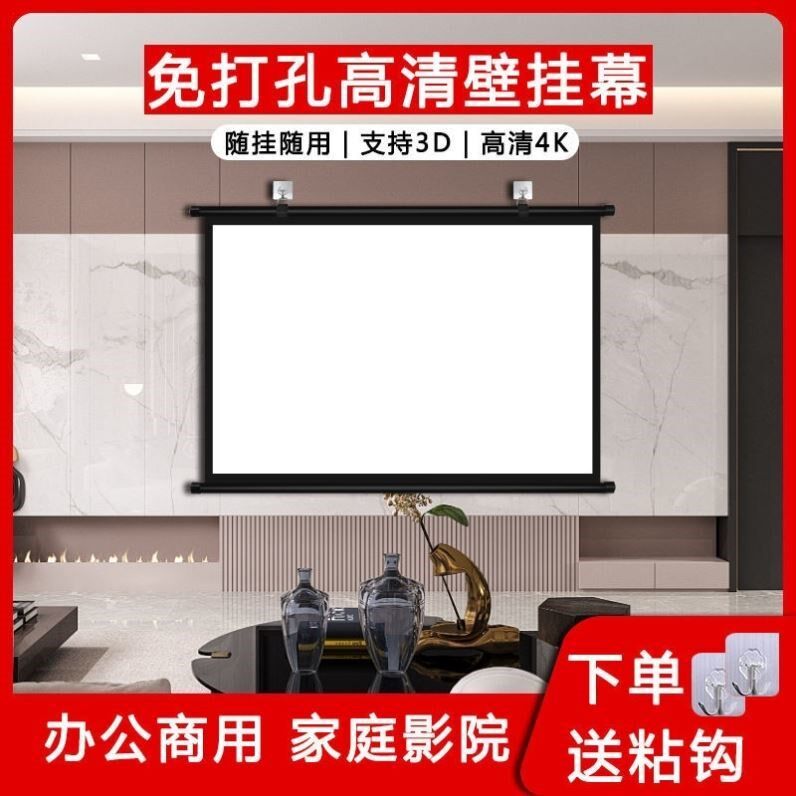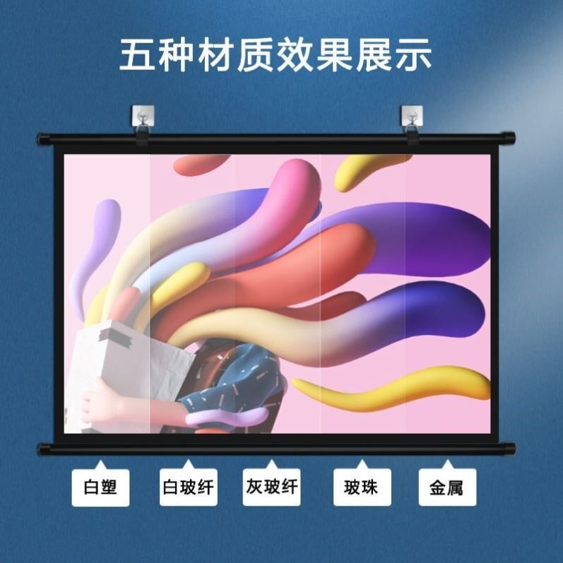 Projector anti-light cloth screen high-definition free of punching wall-mounted manual projection curtain cloth 100-inch simple hanger with wall curtain