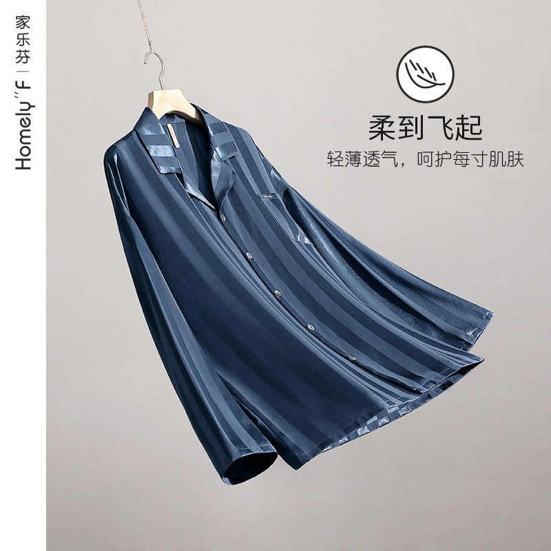 (Cool Feeling) Sleepwear men's spring and autumn, silk ice silk long sleeve stay-at-home clothing for men's emulated silk Spring Four Seasons