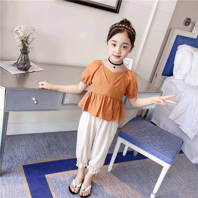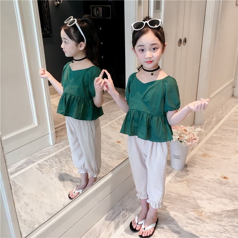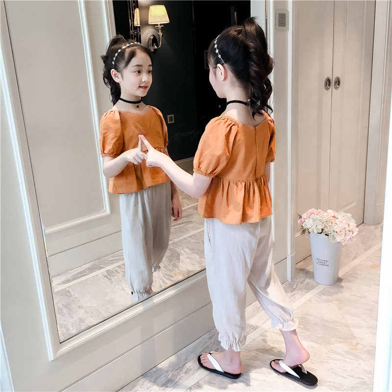 Girls summer suits 2022 new summer girls big boys fashion casual short-sleeved Western style children's girls two-piece suit