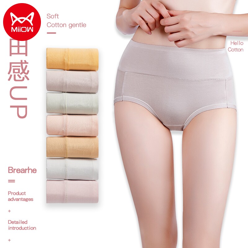 Cat people high waist women's underwear women's cotton bottom warm palace abdomen solid color girls underwear warm waist comfortable safety pants