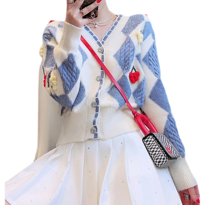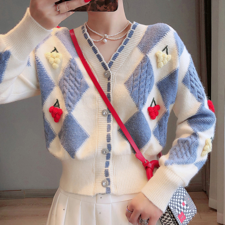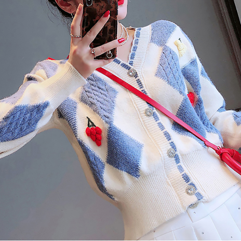 2022 New V-collar Coloured sweater-knitted sweatshirt with a short long sleeve autumn and winter hit bottom blouse