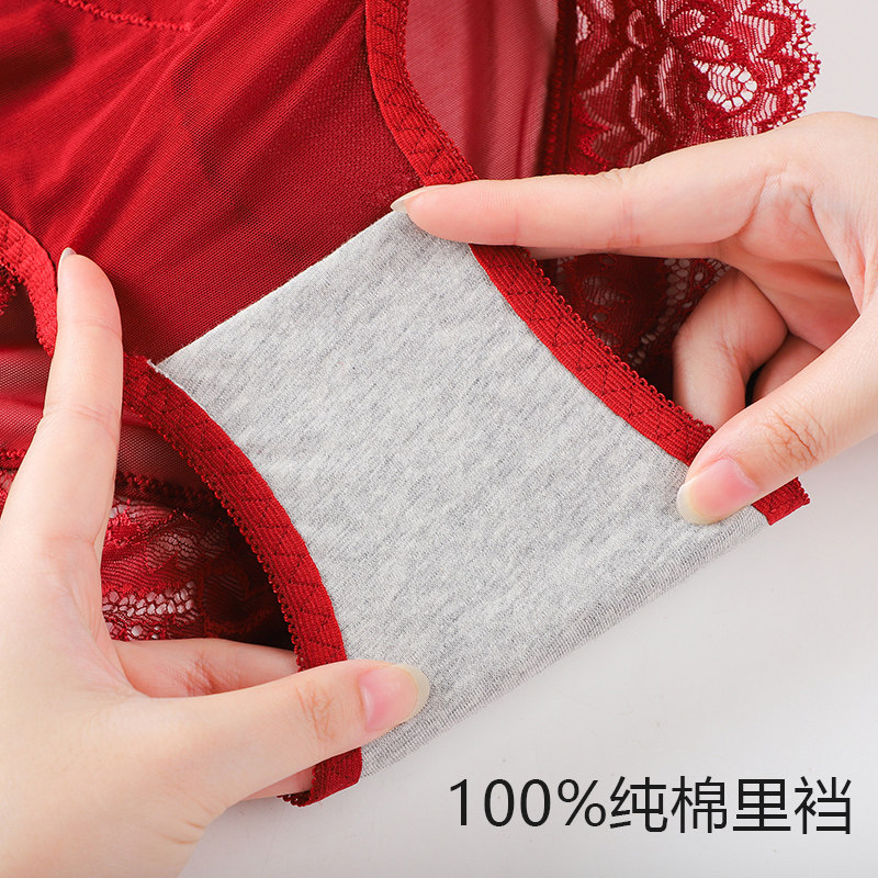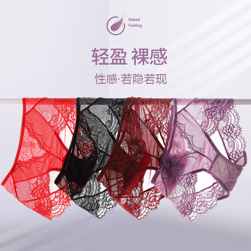 Lace Panties Women's Emotional High Waist Antibacterial Cotton Crotch Ladies Triangle Shorts Summer Thin Transparent Mesh