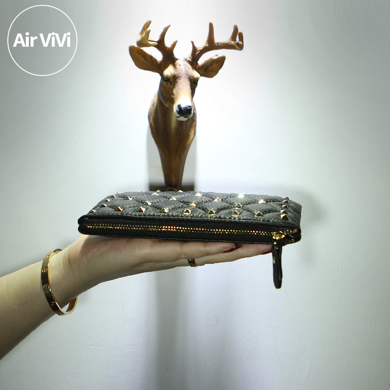 Airvivi-Sheng - New Rivet Chain Chain - Leather Top - Leather Lady Lady Little Wallet Key Pack