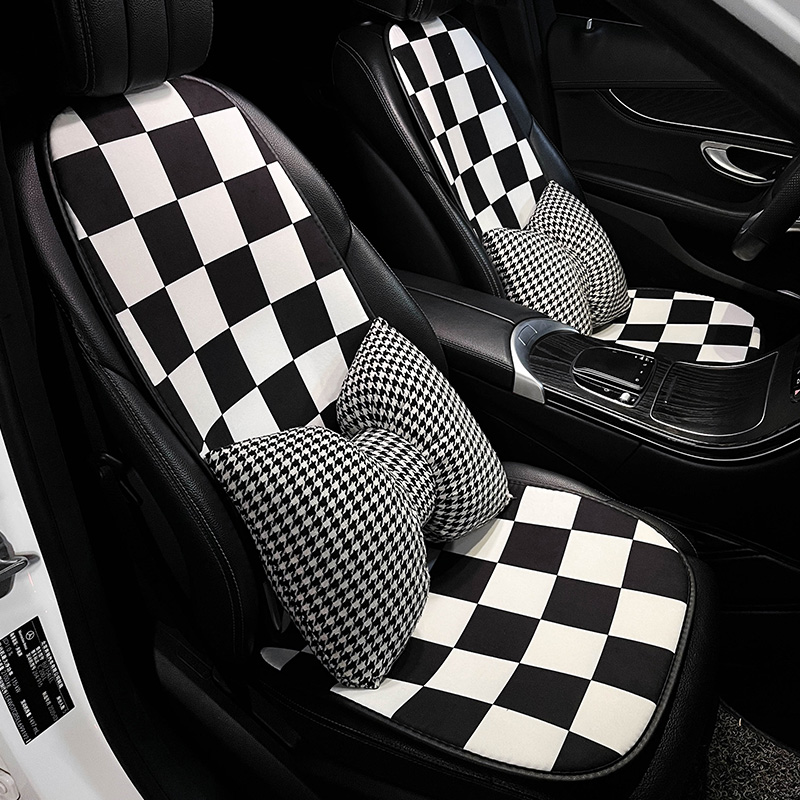 Black and white rhombus headrests (single) Chessboard Lattice (front cushion * 1) Cotton hemp Four Seasons Universal Chessboard Lattice (cushions * 1) Cotton hemp Four Seasons universal Chessboard Lattice (rear cushions) Cotton hemp Four Seasons versatile
