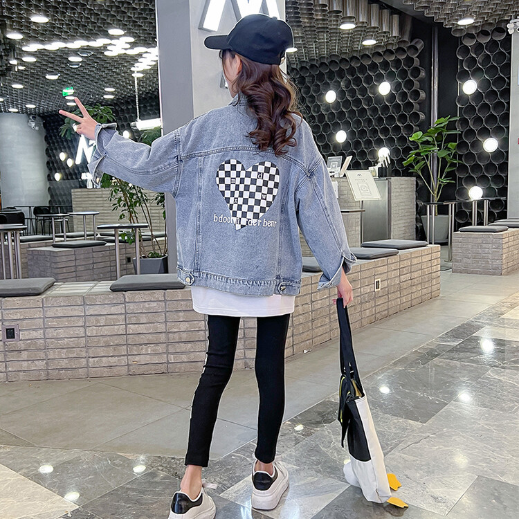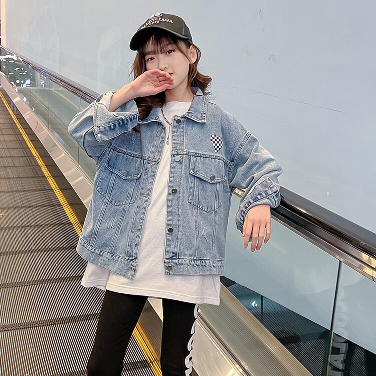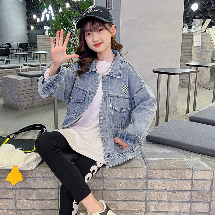 Girl Coats Spring Autumn Money 2022 New Spring Clothing Nets Red Great Boy Tide Clothing Fried Street Trendy Children Denim Blue Blouses