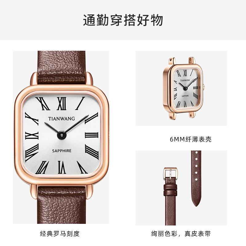 (2022 new items) Tianwang Xiaofang Sugar Watches 20mm Small Meter Disc Women Watch Genuine Leather Retro Little Brown Watch 31278