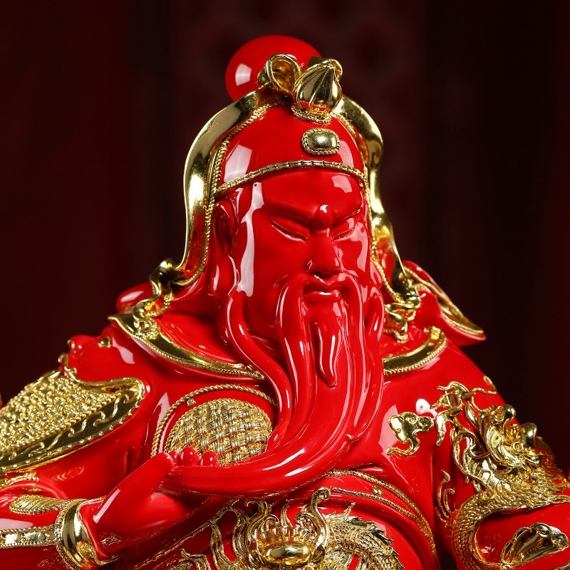 Dai Yutang Ceramics < Wen Guan Gong Lacquer Line Sculpture > Wu Caishen Statue of the Statue Shop Opening Gift Pendulum