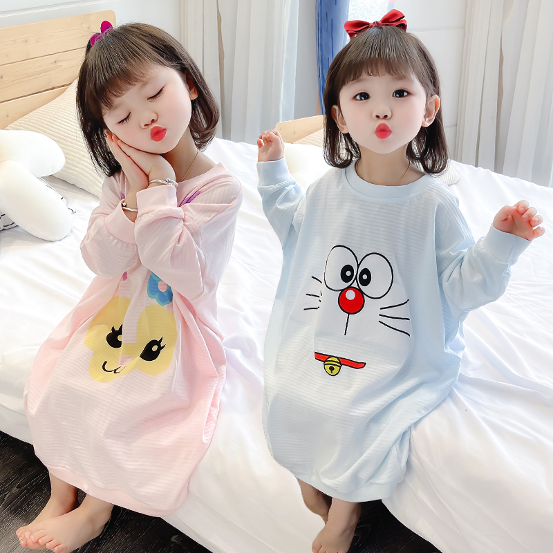 Baby pajamas, baby rompers, cotton children's nightgown, spring and autumn girls' nightdress, one-piece anti-kick sleeping bag, summer thin section