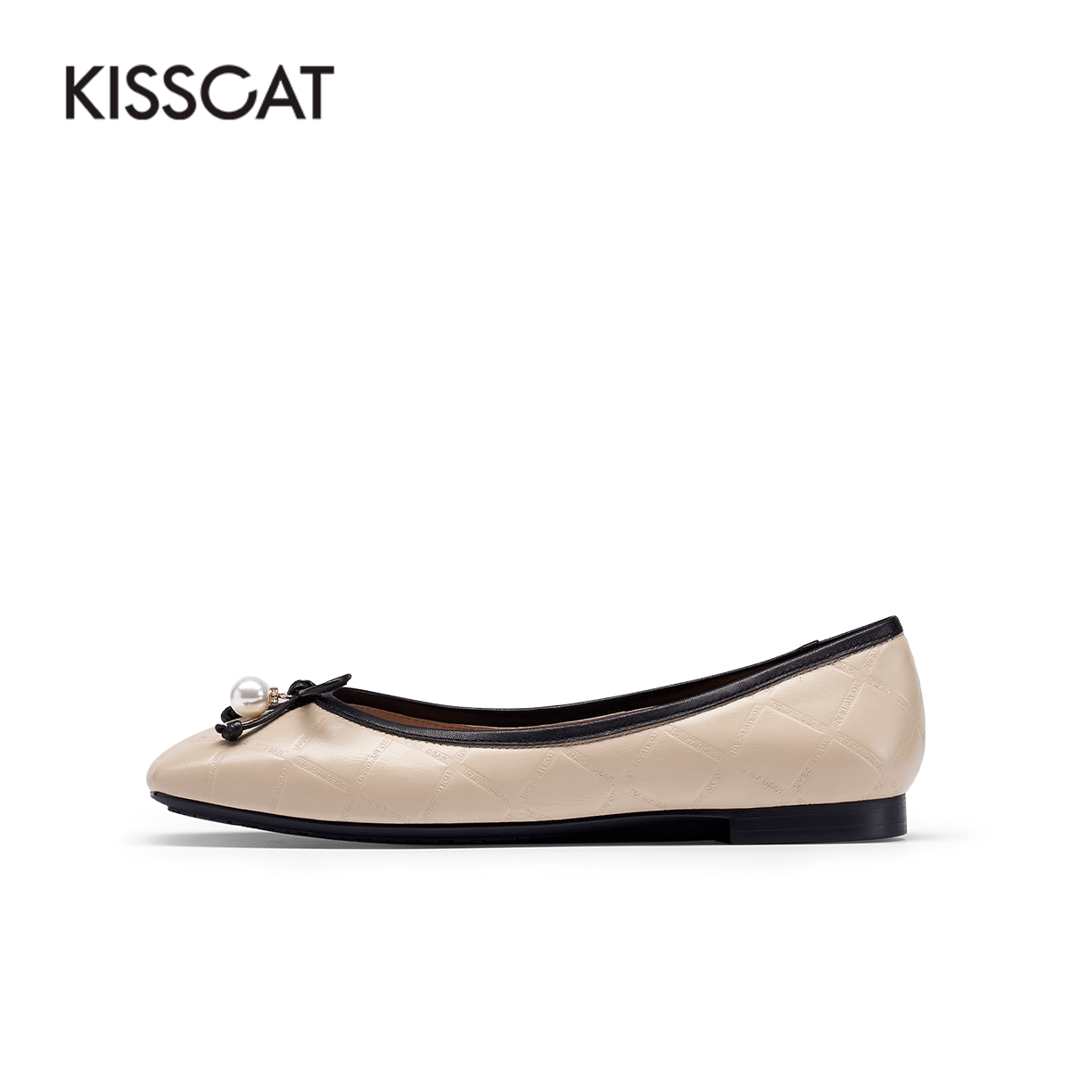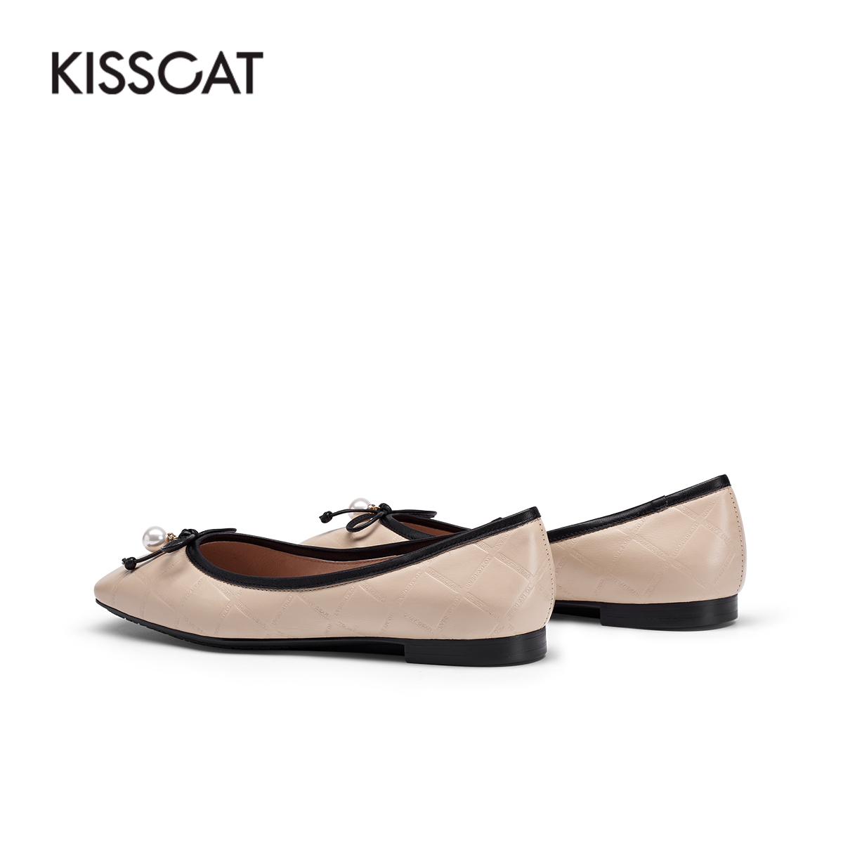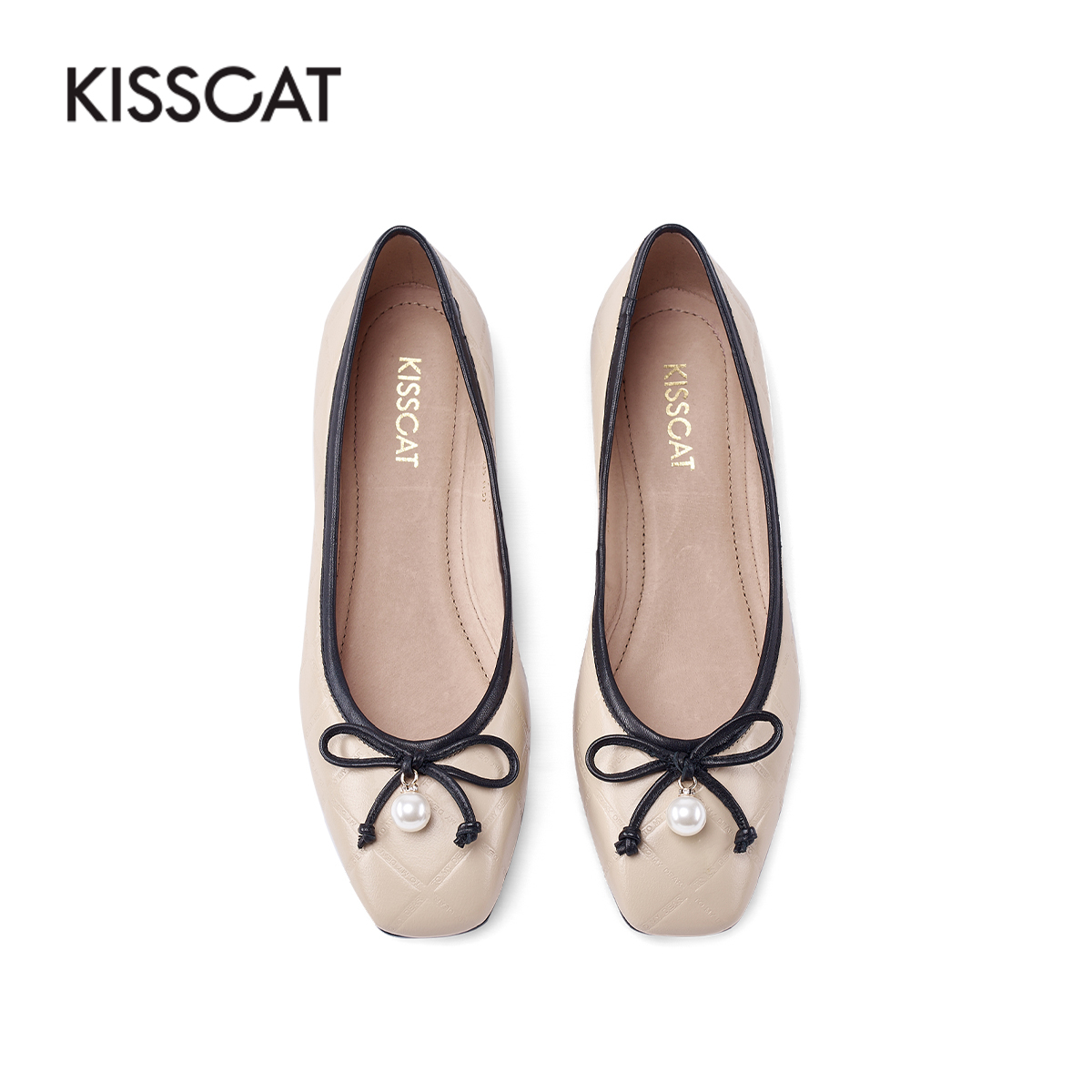 Kissing cat 2022 Summer sweetness retro pearl flat base Shoe fairy Wind Butterfly knot Sheep style single-shoe woman