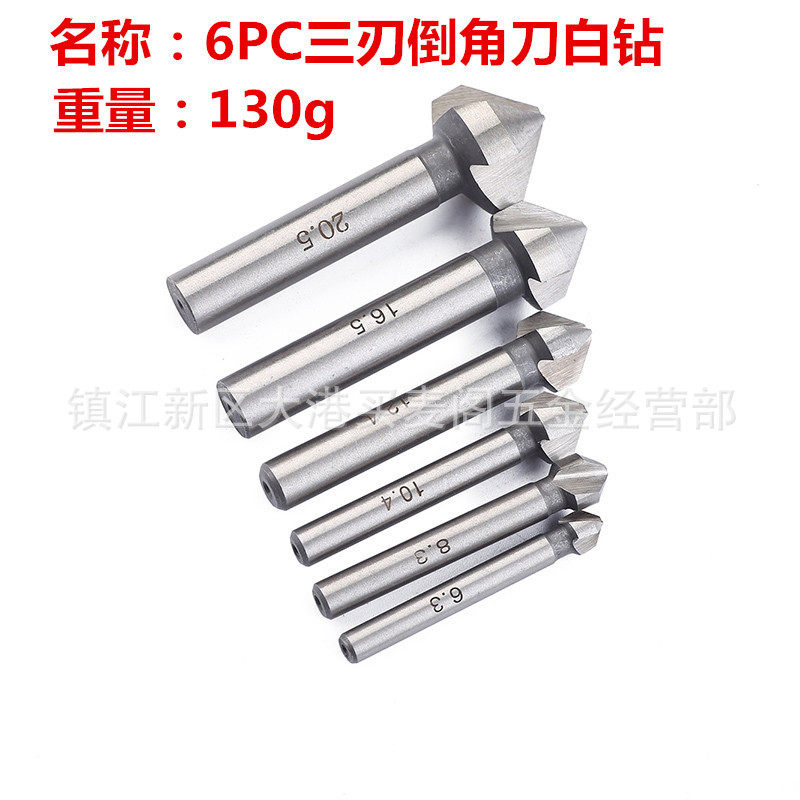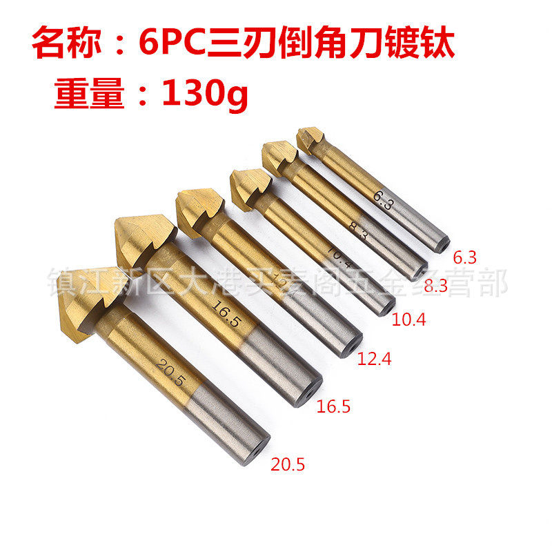 Titanium plated titanium white drill 6PC three-edged chamfer angle knife countersunk and chamfering machine