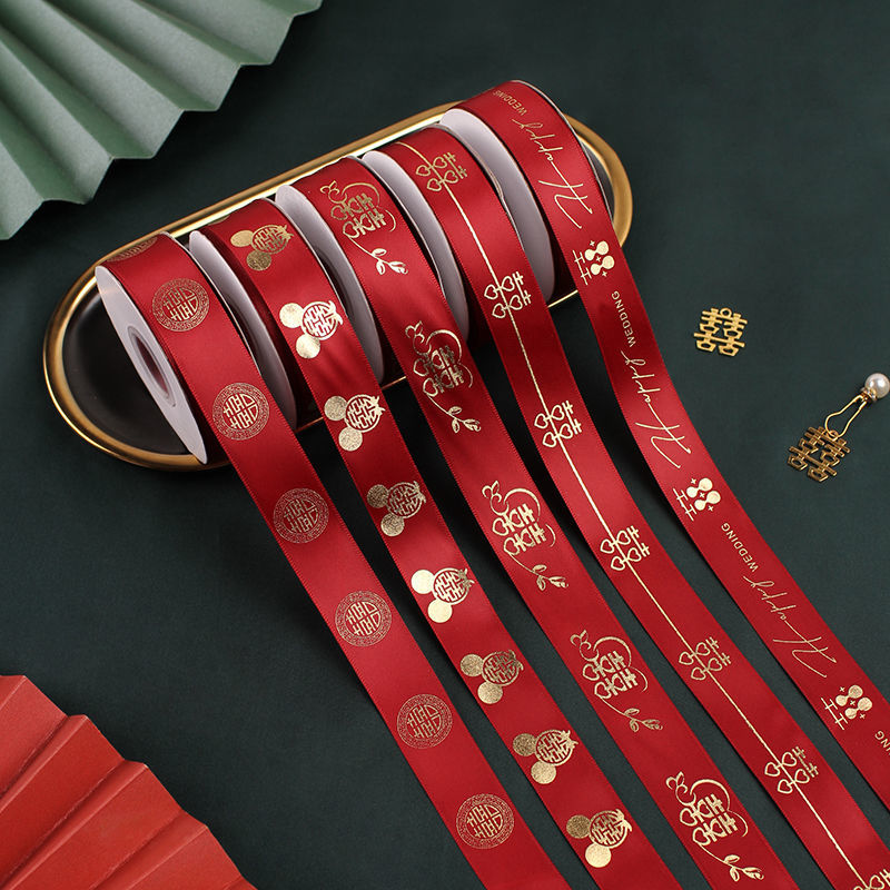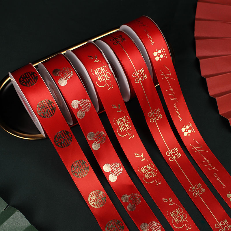 Wedding Supplies Daquan Red Ribbon Bridal Dowry Bundle Quilt Bandage Hi Belt Bronzing Ribbon Wedding Car Decoration