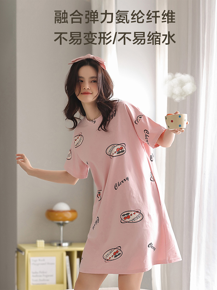 Hengyuan Xiang Pure Cotton Sleeping Dress Lady Spring Autumn Season Students' Home Conserved Cute And Thin Short Sleeves Loose Sexy Sleepwear Summer