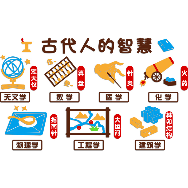 Kindergarten China Ancient Invention Ring Innovation Themed Wall Decoration Corridor Stairs Arrangement Classroom Cultural Wall Sticker 3d