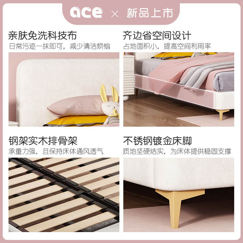 Children's solid wood bed (minimalist cream style) children's solid wood bed 3E mattress 18CM children's bed bedside table*1 children's bed bedside table*2 children's solid wood bed 3E mattress 18CM bed