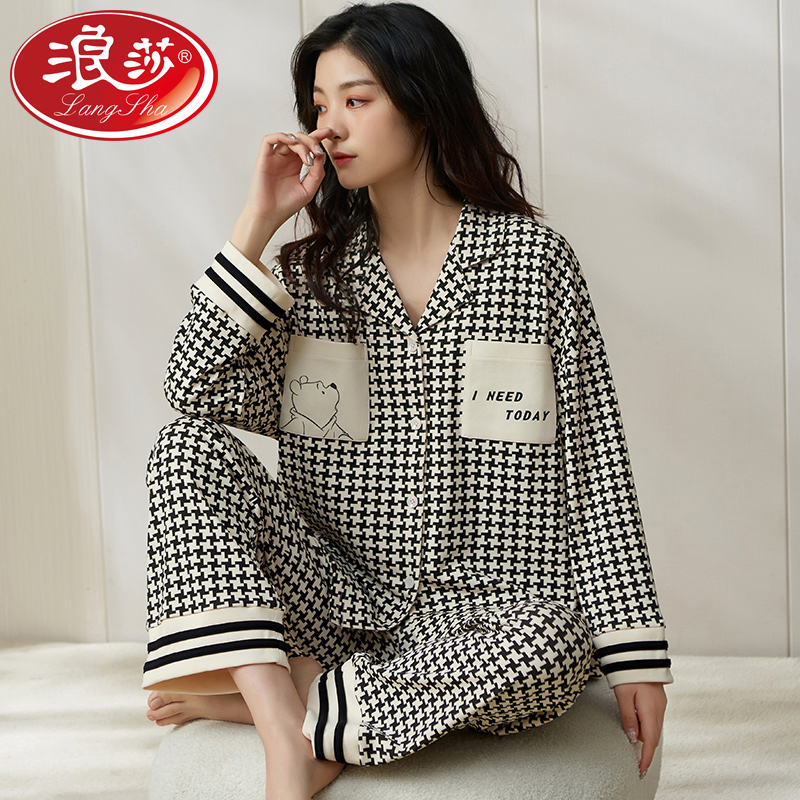 Surina 2022 New Sleepwear Woman Spring Autumn Season Pure Cotton Long Sleeve Lady Can Outwear Graffiti Home Clothing Windfall