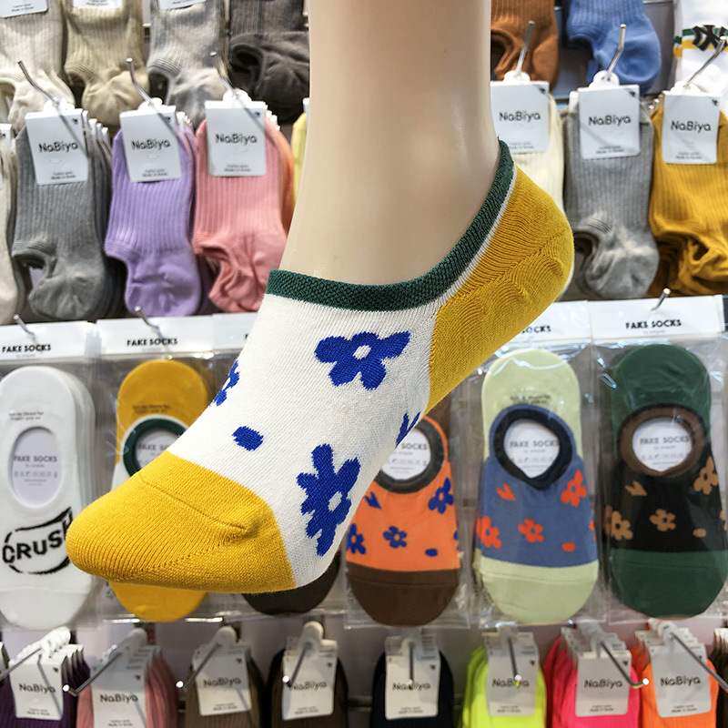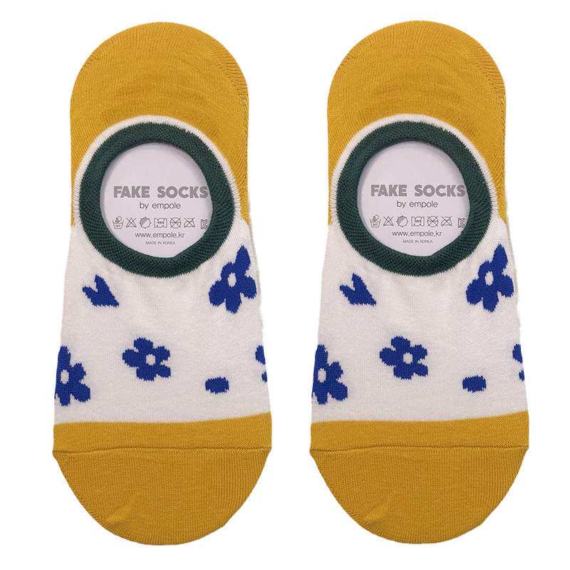 Invisible Socks South Korea EMPOLE Retro Collared Flowers Invisible Socks Silicone Gel Anti-Spring Summer Thin Cotton Female Short Socks