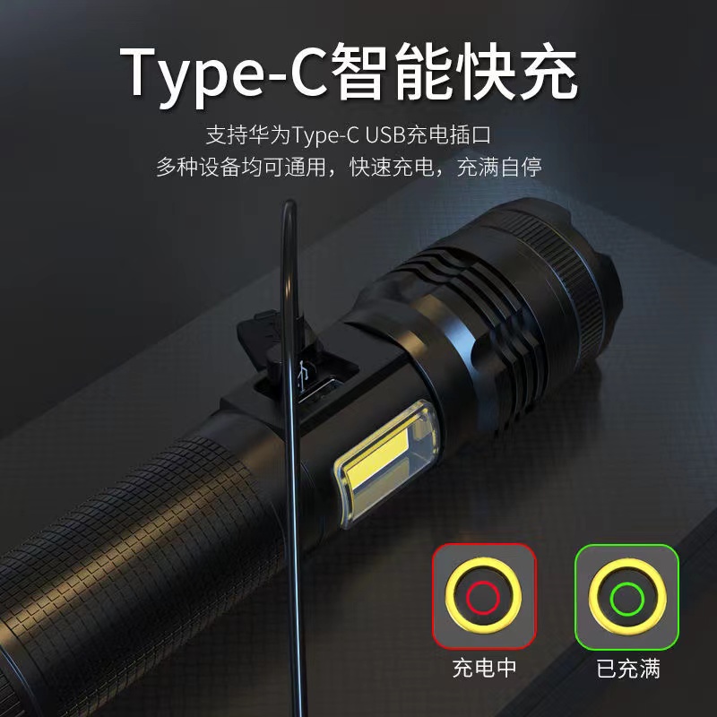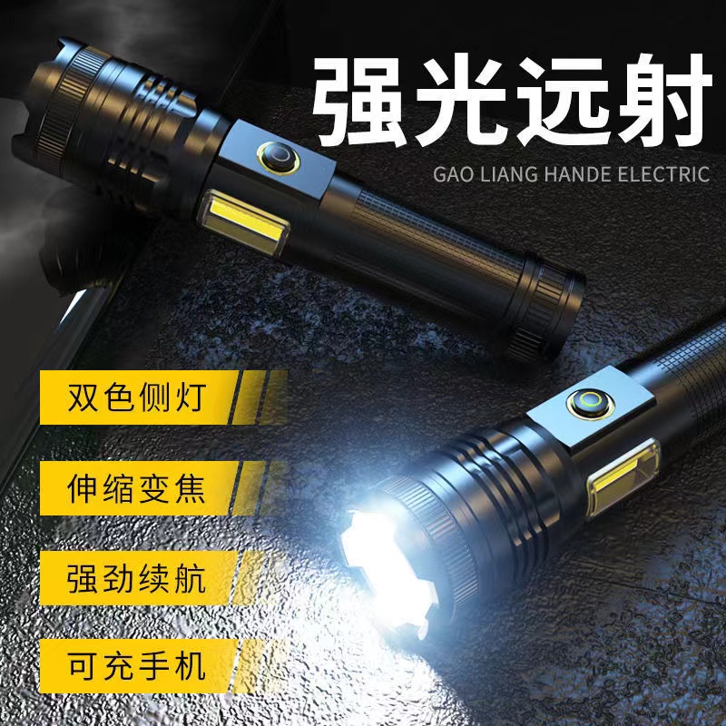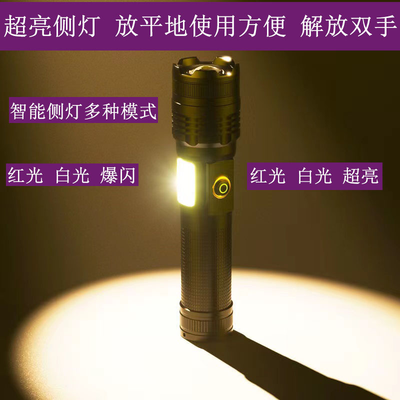 Flashlight intense light rechargeable exploits far-shot waterproof portable home field super-bright variable focal cob side lamp