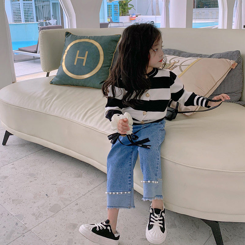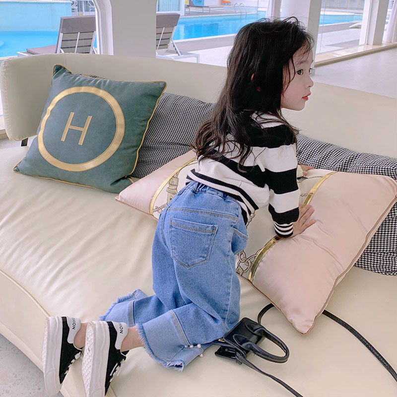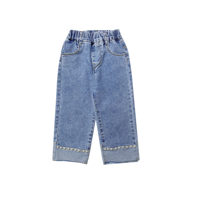 Oxygen Adolescent Girl ~ White Pearl Light Grinding Hair Girl Jeans Spring Autumn 2022 New Dress Big Baby Pants