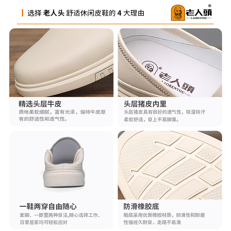 Old men's leather shoes for autumn new leather breathable white casual men's shoes soft leather soft bottom slip-on loafers