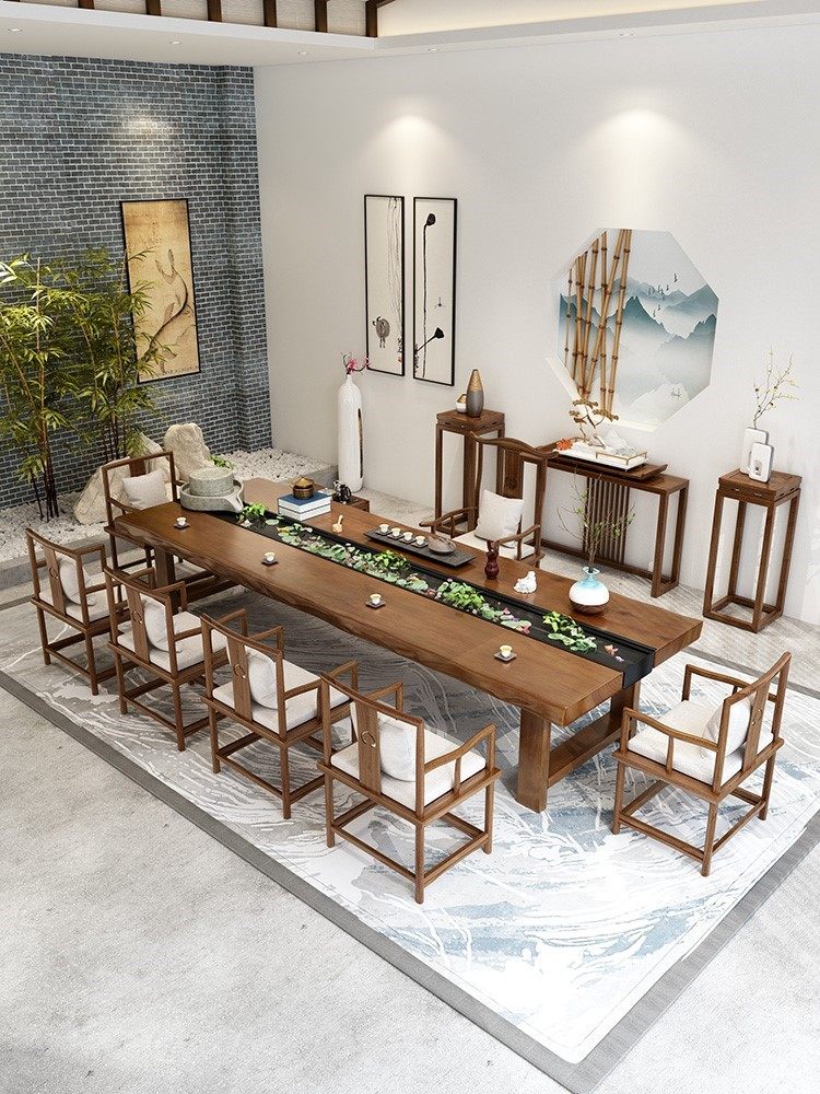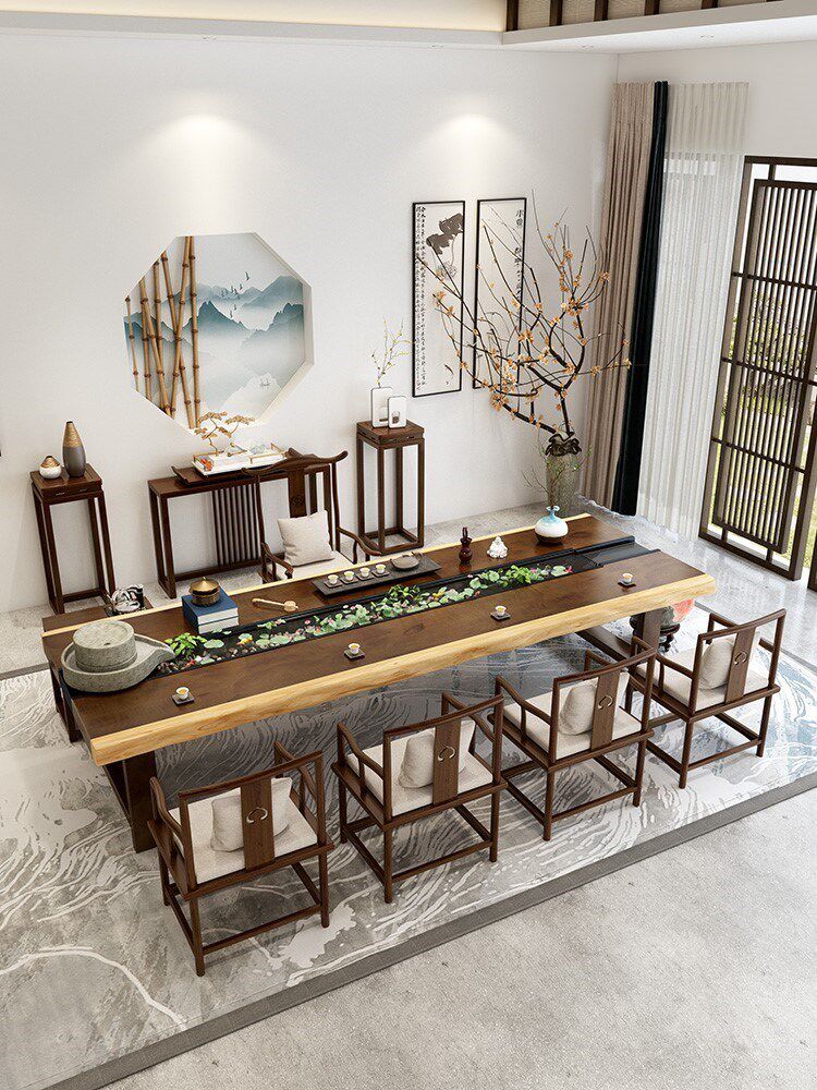 Log circulating water tea table new Chinese solid wood Zen reception coffee table kung fu tea table tea table