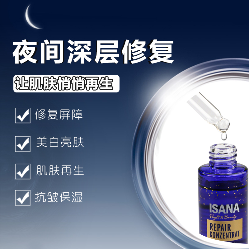 German Isana night repair essential oil essence brightens skin tone, restores moisturizing anti-wrinkle firming facial essence
