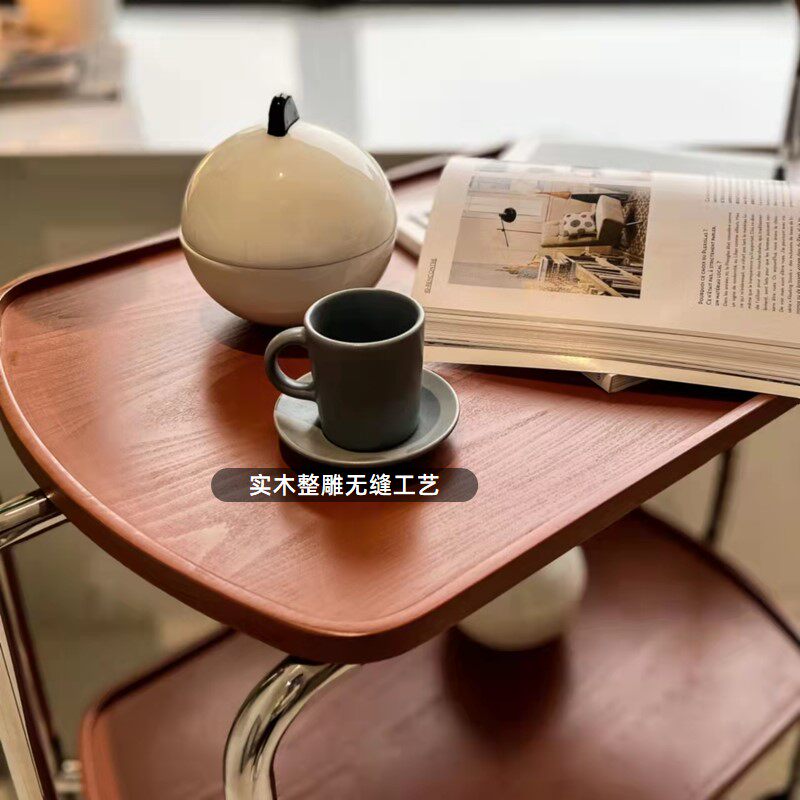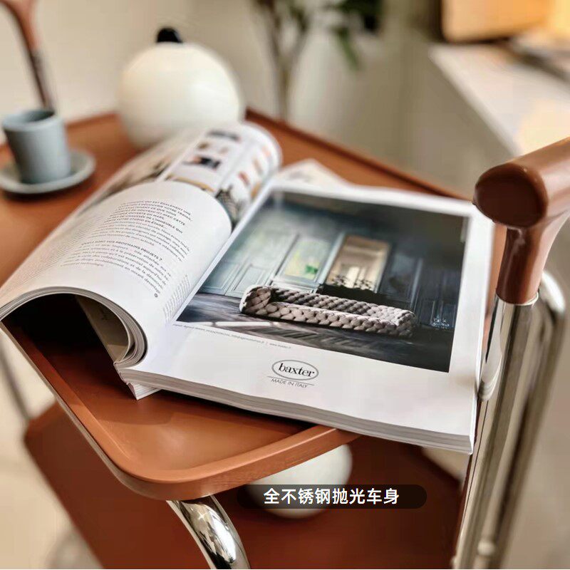 Slightly amused material-made double cart shelf Middle-ins high face value living room containing mobile side several stainless steel wood