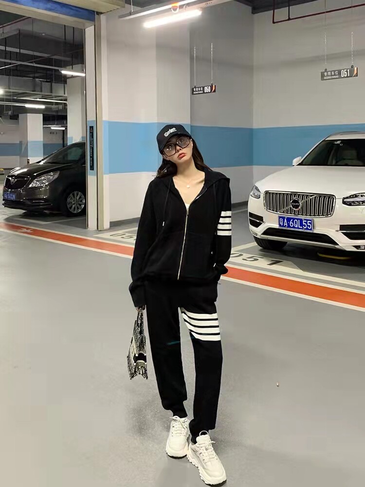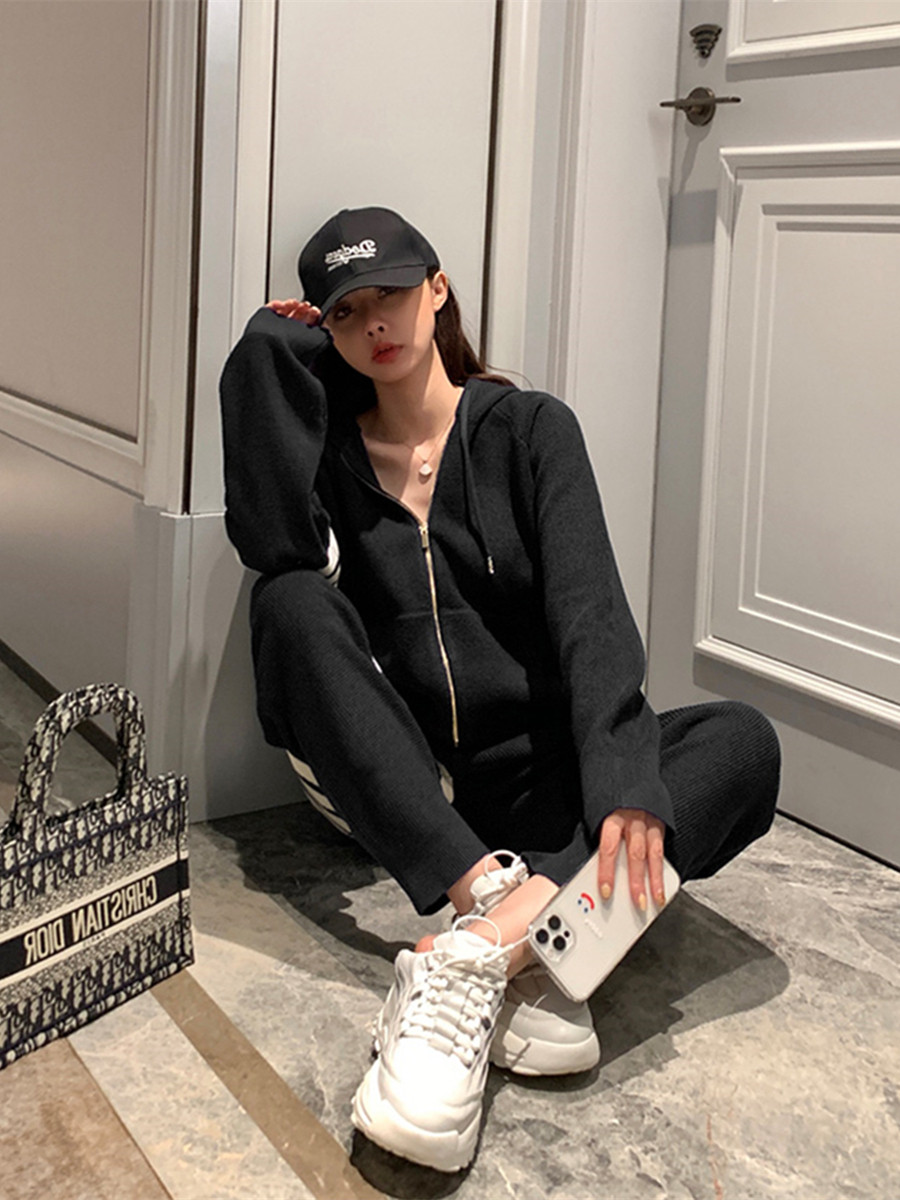 Korean version of loose sports suit female spring and autumn student fashion large size thin sweater casual two-piece running suit trendy
