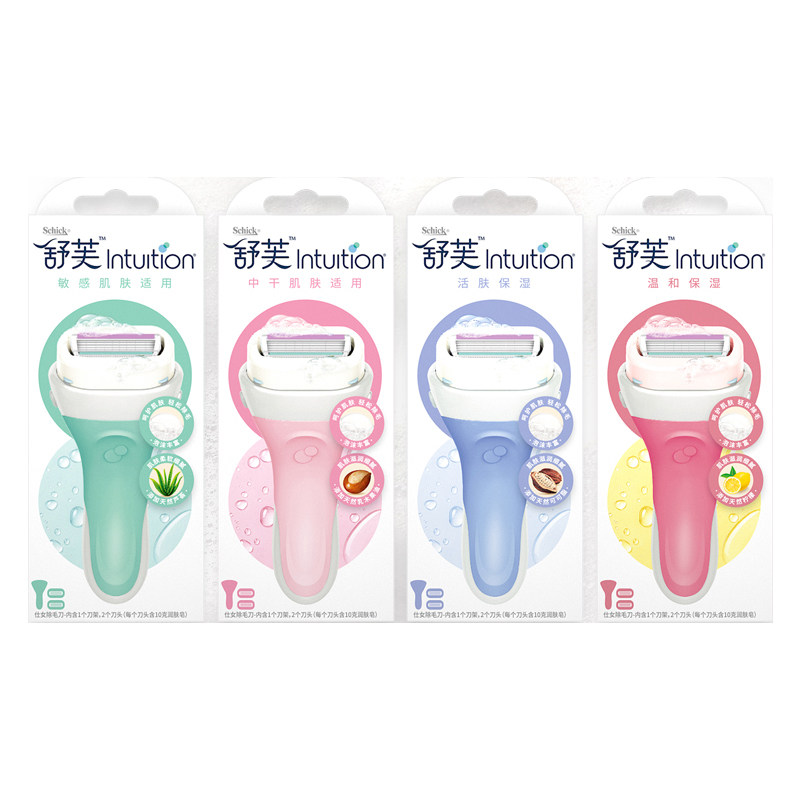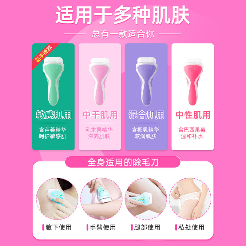 New version of green-sensitive type (1 knife holder two-tool-head) Pink-Mild (1 Knife Holder two-tool-head) New version of pink-medium dry type (1 tool holder two-cutter heads) New version of purple-moisturizing type (1 knife holder two knives)