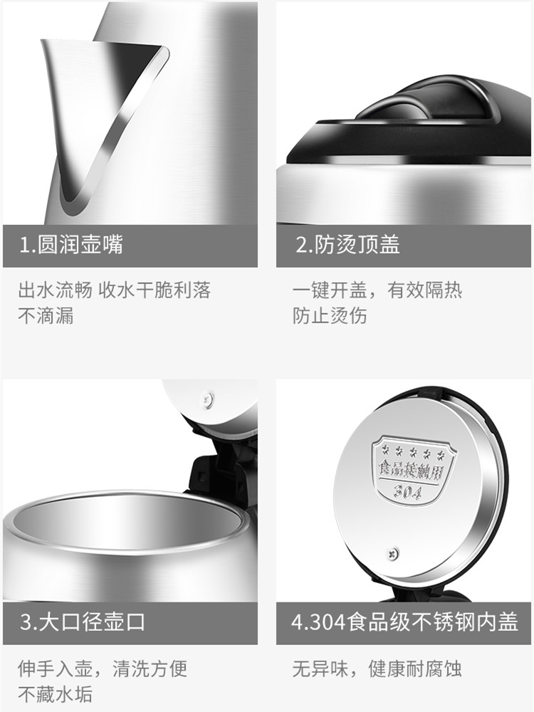 Hemisphere Electric water kettle Home 304 stainless steel insulated integrated boiling kettle Automatic break electric heating kettle-Taobao