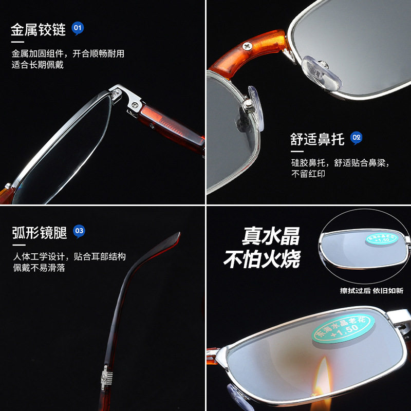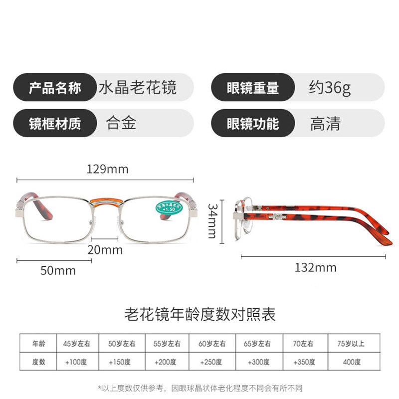 High-end crystal glass Old flower glasses Men and women middle-aged and old high definition eye care and anti-fatigue old flower glasses