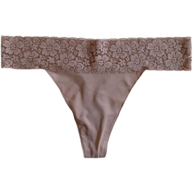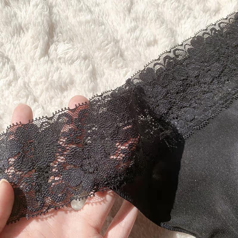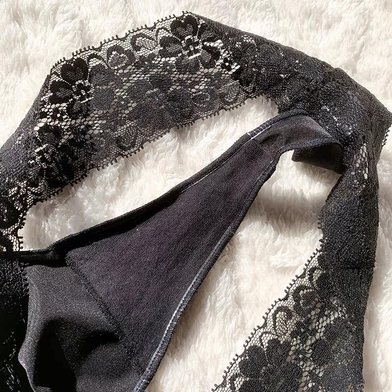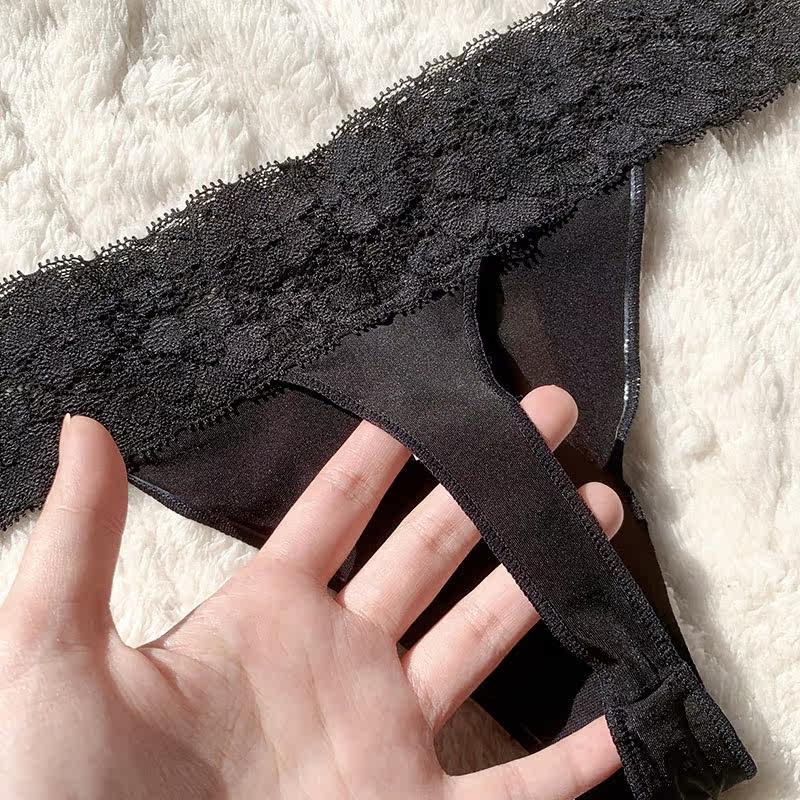 Large size underwear women's summer ultra-thin seamless lace t-shirt black plus fertilizer to increase thong export ladies thong