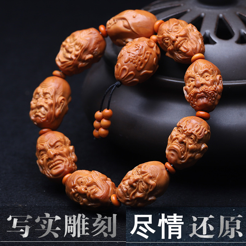 Text Playing 8 Rohan Olive Nuclear Bracelet for Men's Play Finely Carved Bifacial Rohan Olive Hut to Play Hand-string Natural