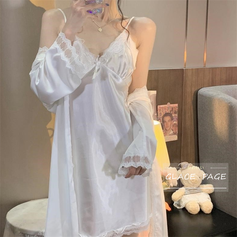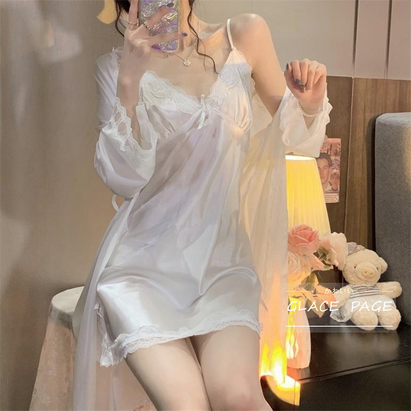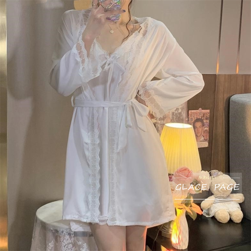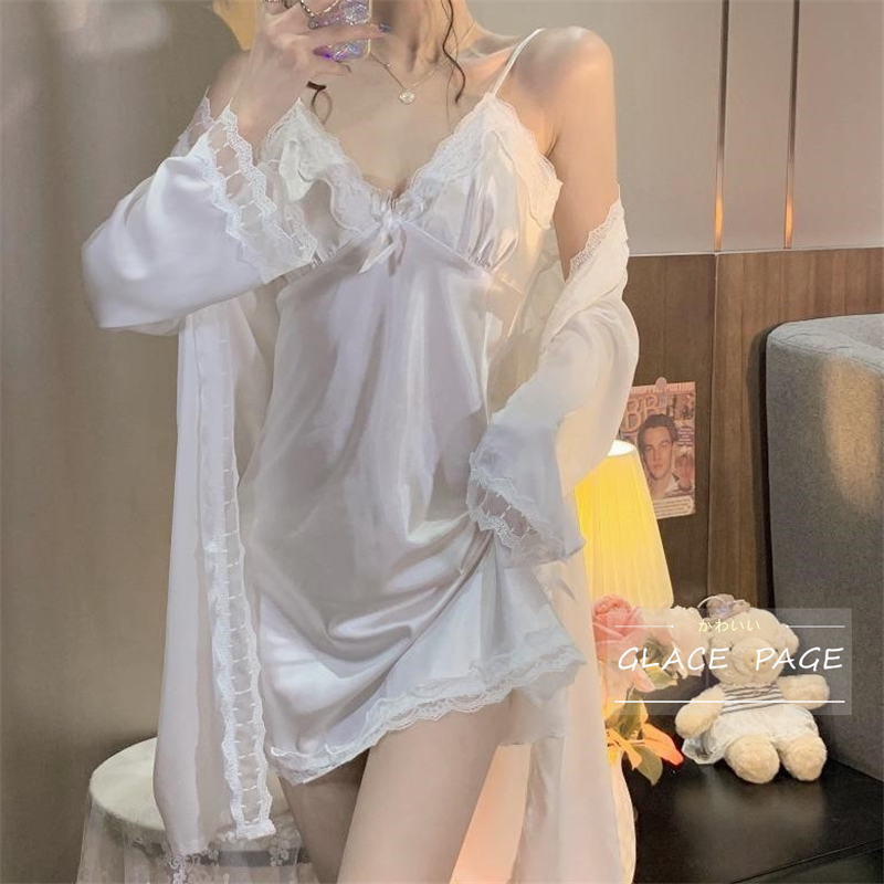 GLACE PAGE ICE RIBBON Sleepwear Woman Spring Summer Sexy Pure Desire Wind Lace Pyjamas Sleeping Gown Home Suit Suit