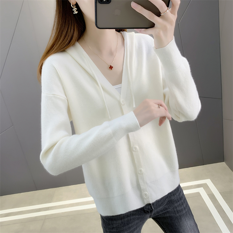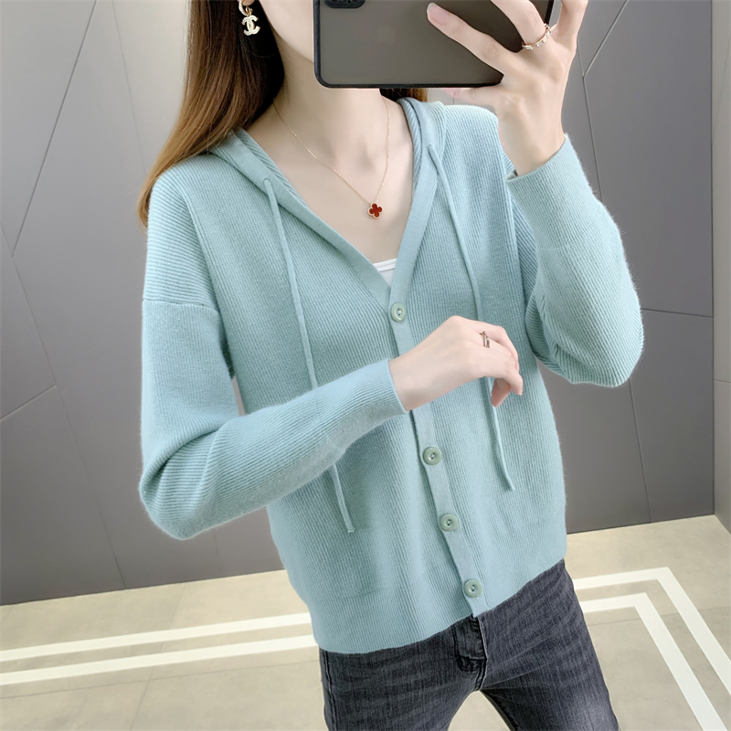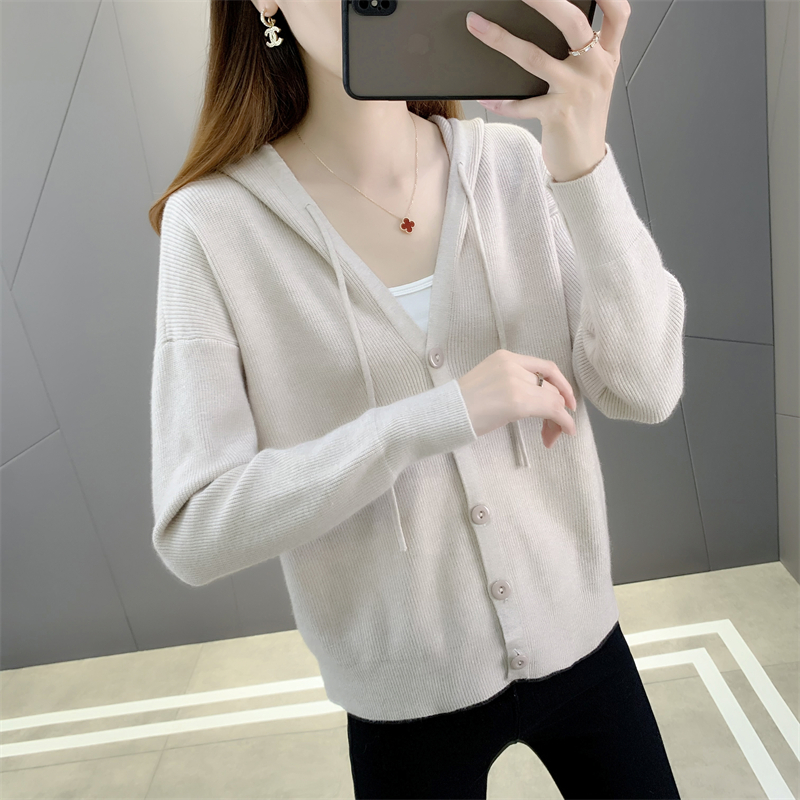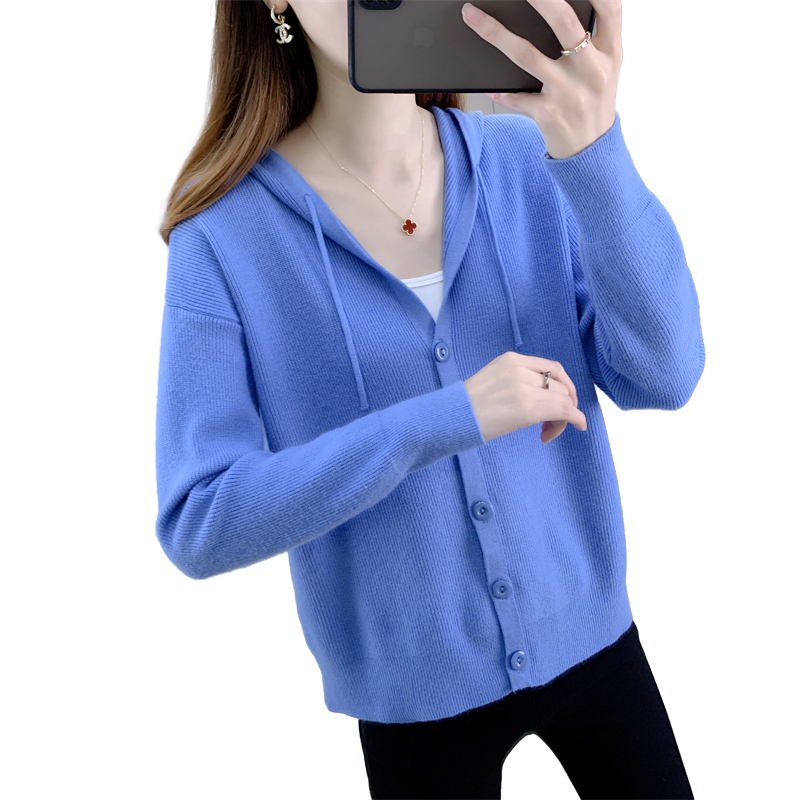 Hooded knitted jacket women's short loose loose outer wear 2022 spring and autumn new ladies knitted cardigan all-match thin women