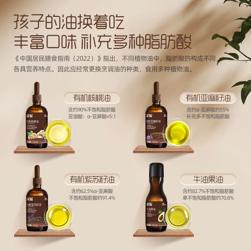 Yingshi Caizhi organic walnut oil avocado perilla seed linseed British oil for baby baby food supplement