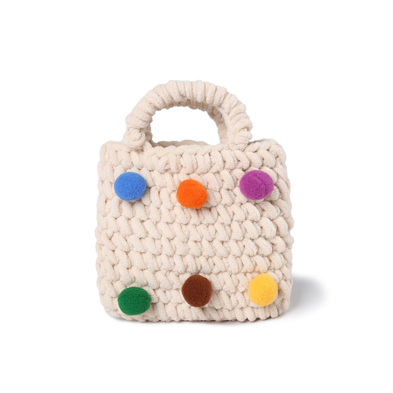 Japanese Boy Scouts Winter Plush Handmade Weave U Weave Wool Thread basket Handbags Handbag Baby Hair Balls Love Bag