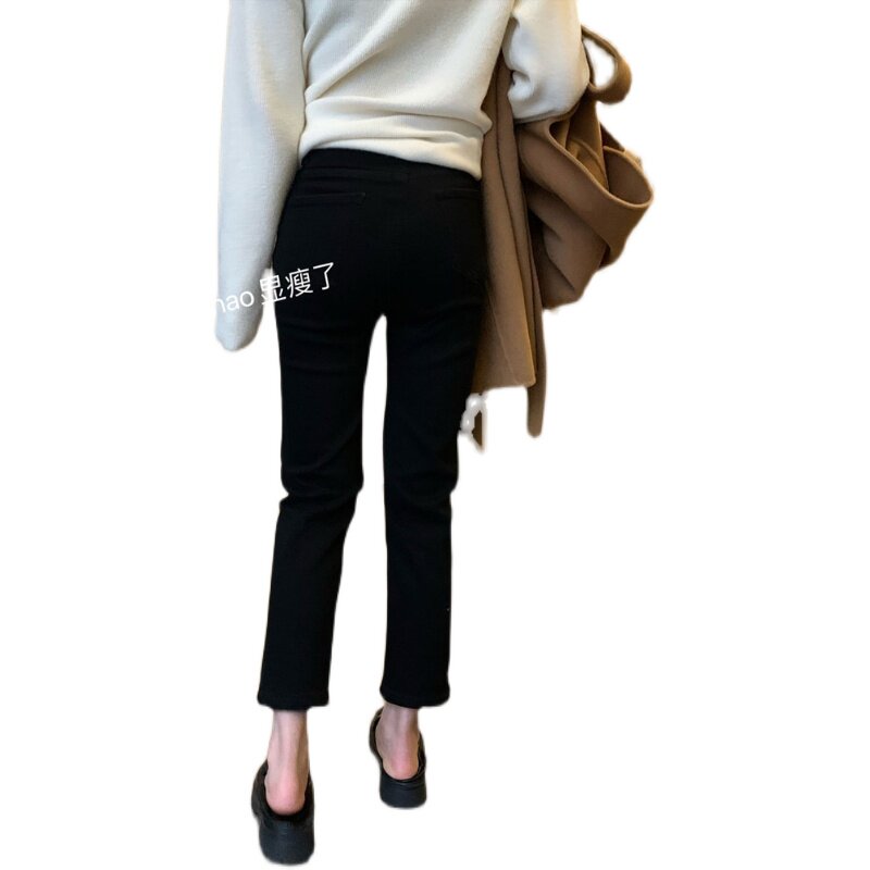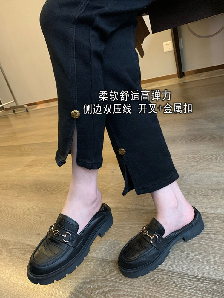 Large size dress with open fork jeans female summer high waist display slim smoke pipe pants Fat younger sister mm straight cylinder pants pear-shaped stature
