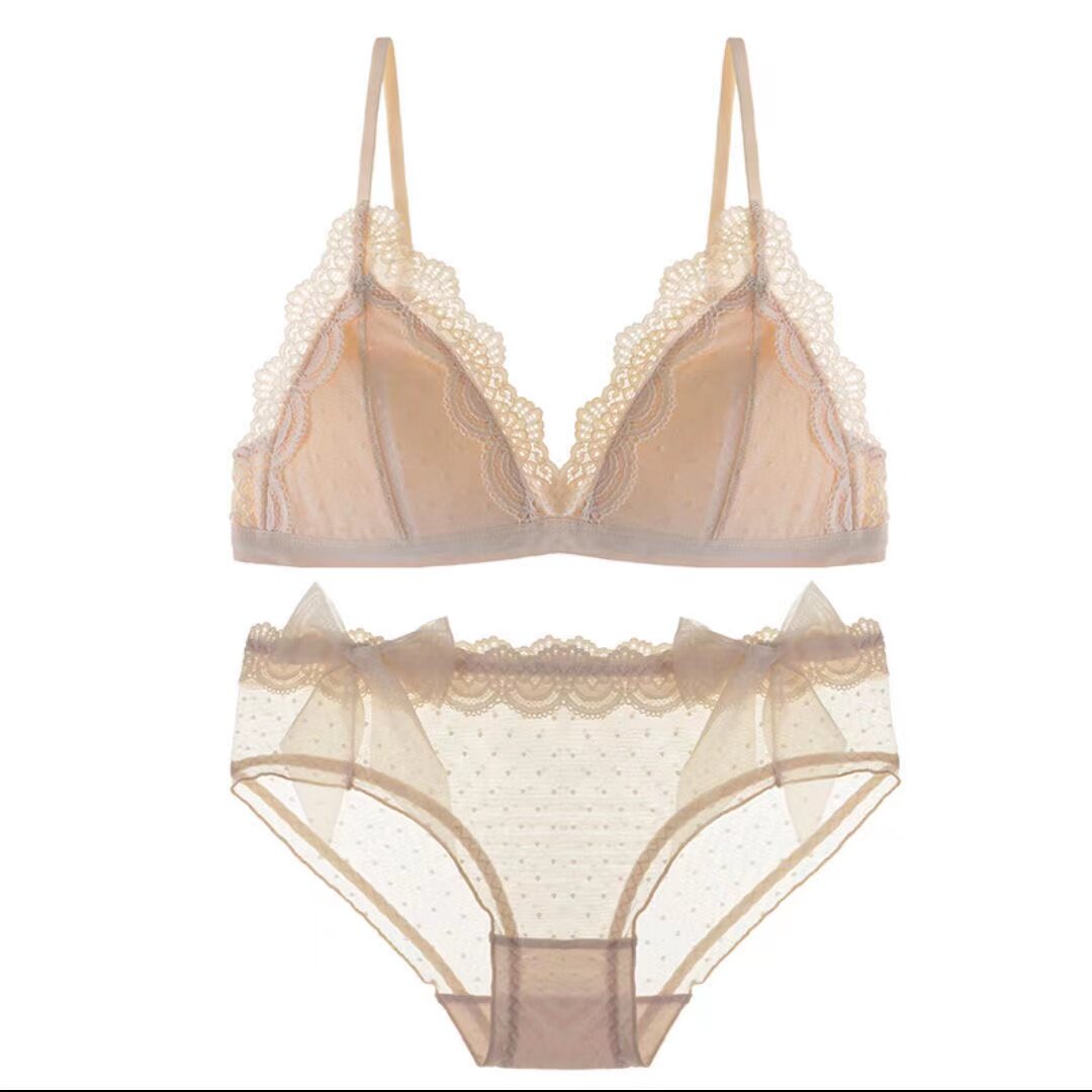 Japanese Parfage ins lace underwear triangle cup sexy temptation bra upper support gather ultra-thin underwear set