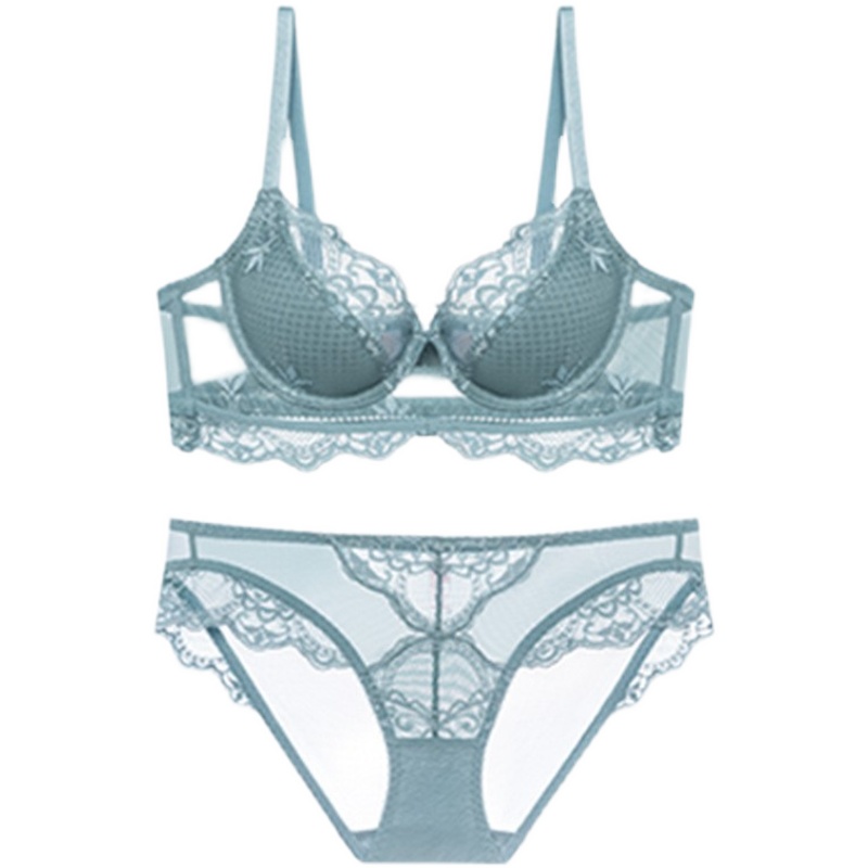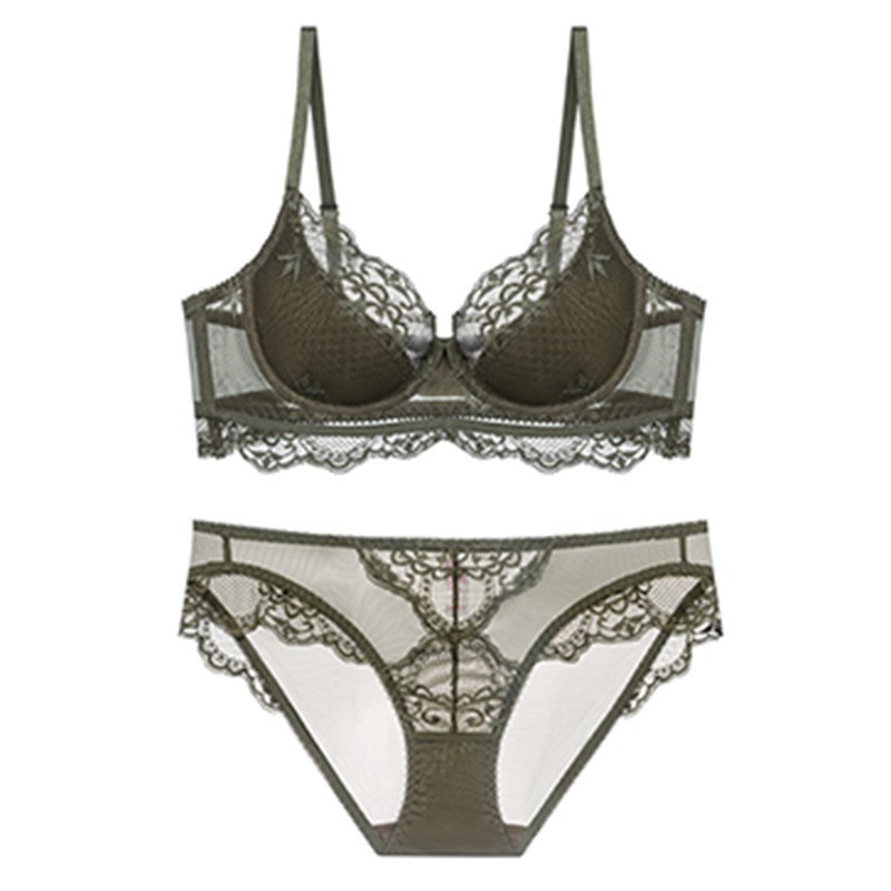Sexy lace lingerie set ultra-thin section top support big breasts show small gathered ladies sexy bra summer new style